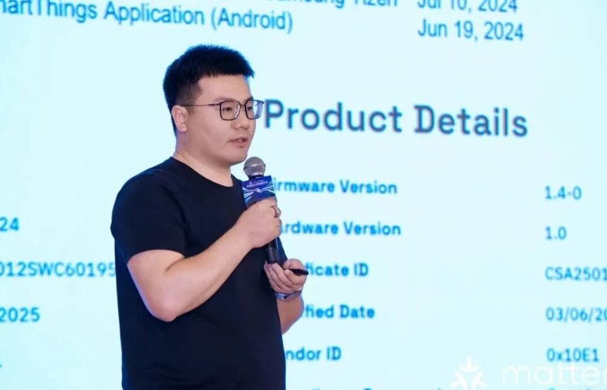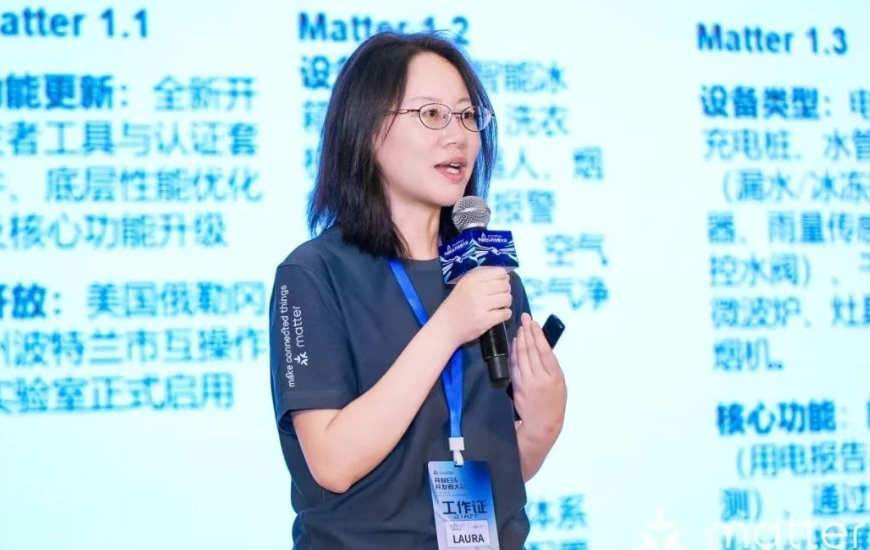 连接标准联盟亚太区架构师 杨莉则重点介绍了 Matter 1.4/1.4.1 重要更新:设备跨生态同步: 通过“网络同步管理员”角色,实现多设备一键分享至其他生态,解决重复配网痛点;低功耗优化: 新增 ICD(间歇性连接设备)协议,支持传感器休眠超 15 秒电池寿命延长至数年;丰富设备类型:1.4 新增网络基础设施设备类型确保 Matter 底层通信网络提供安全稳定可靠的连接,新增固定式开关和可调节负载控制器设备类型以适配墙面开关的产品需求,并进一步丰富了能源管理设备类型,增强了占用传感器功能。配网体验提升: 增强配置流程使能在生态 APP 中直接显示制造商的条款和条件;支持一个二维码实现多设备配网与将配网信息包含在 NFC 标签中(1.4.1)。