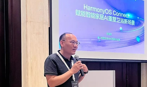 在当天下午的技术分论坛上,佳普乐副总经理谢海财发表了“鸿蒙智联赋能智能卫浴 3.0”的主题演讲,深入阐述了鸿蒙智联技术为卫浴场景带来的智能化变革。借助鸿蒙智联技术,用户能够通过手机、中控屏、华为音箱等多种终端设备,对卫浴空间进行全方位管理。