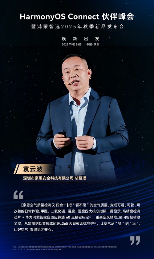 2025年9月26日,HarmonyOS Connect伙伴峰会暨鸿蒙智选2025年秋季新品发布会在深圳成功举办。会上介绍了鸿蒙智联生态建设的最新进展,并正式发布了一批鸿蒙智选秋季新品。